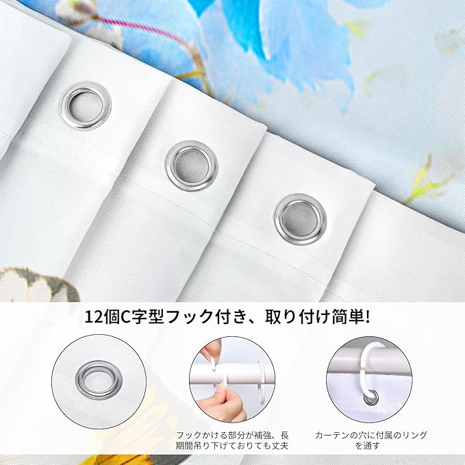 【取り付け簡単】各製品には耐久性のあるプラスチック製ハトメが 12 個付属しており、シャワーカーテンを浴室に簡単に掛けることができます。ハトメ付きで、女性でも簡単に取り付けられます。