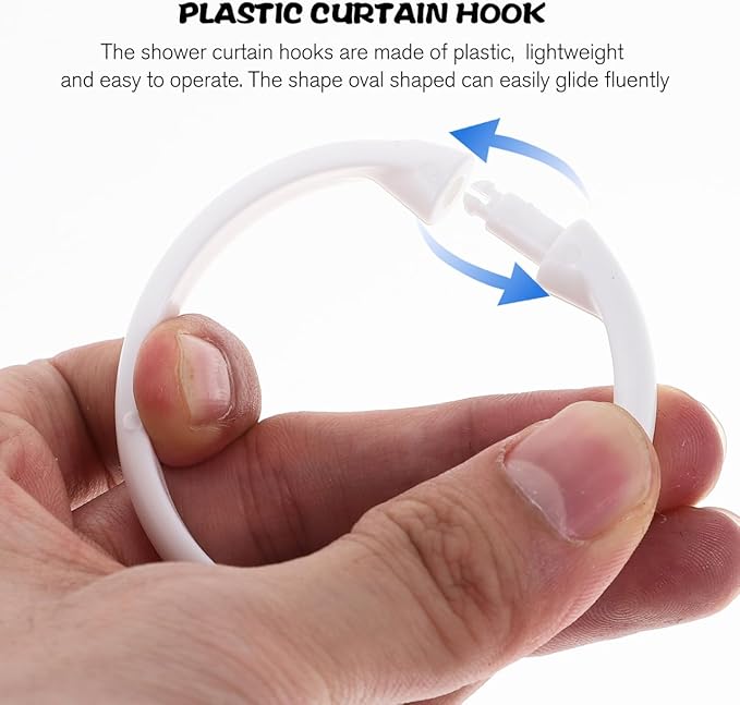 カーテンフックリングハンガーシャワーカーテンフックはプラスチック製で、軽量で操作が簡単です。白いカーテンロッドは優れた伸縮性があり、壊れにくいです。カーテンポールリングの形状は楕円形です。簡単に滑らかに滑ります。浴槽、バスルーム、更衣室、ドレッシングルームなどに適したカーテンです。