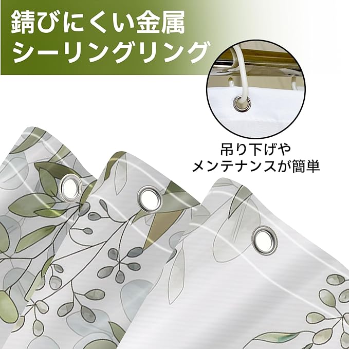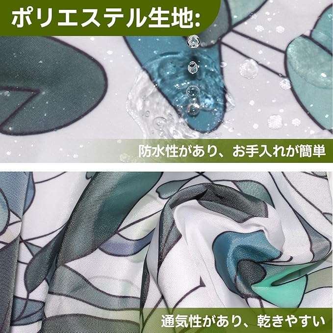 Maeau シャワーカーテン おしゃれ リング付属 取付簡単 間仕切り プライバシー保護 お風呂場 洗面所 浴室適用 仕切りカーテン 可愛い 葉 180*180cm