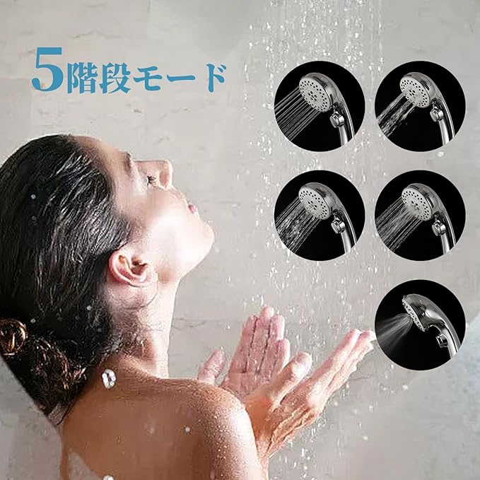 [5階段モード] レイン、SPA、ミストの3種類の吐水方から5つのシャワー吐水モードが組合せできます。●モード①:たっぷりな水量で泡や汚れ等を一瞬に流せます。●モード②:強さと柔らかさを両立させていて特別なシャワー体験をもたらす。お子様におすすめです。●モード③:ミストのように噴水して、毛穴の根元まで浸透して汚れを洗浄する。●モード④:勢いのある水流で素肌にほどよく刺激をあげる。体に当てて、お湯で暖かく浴び心地がよいです。●モード⑤:吐水の力強さで毛穴の奥に詰まった体の汚れを浮き上げらせて取り落とす。 異なるシャワー心地が楽しめる5つの吐水モードですが、ご自身が心地良いと感じる強さや水流に調整することができます。ご家族の皆様の好みやニーズに応じて5段階モードリングを回して簡単に切り替えられます。