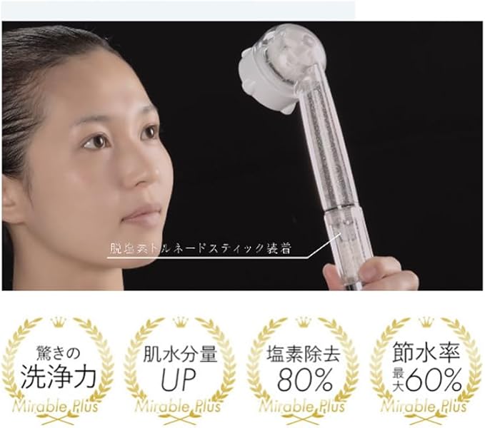 ミラブルプラスシャワーヘッド ウルトラファインバブル 美容シャワーヘッド トルネードスティック付き 肌深度清潔 肌ケア 塩素低減