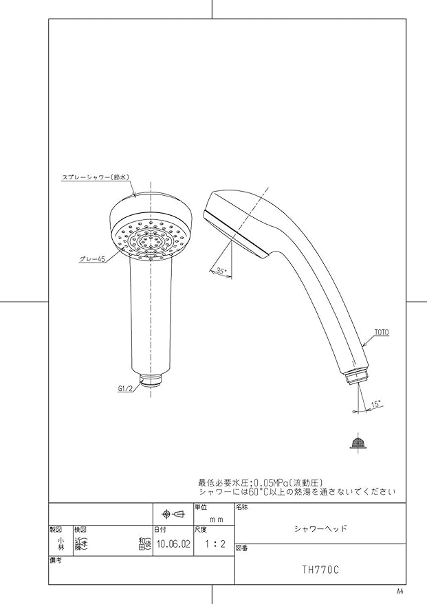 TOTO 節水シャワーヘッド(メッキ) TH770C