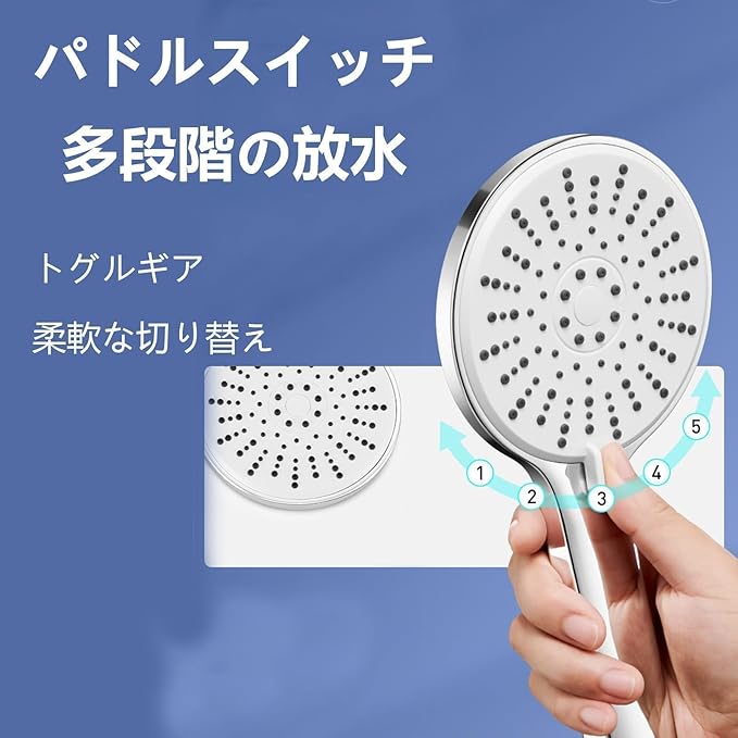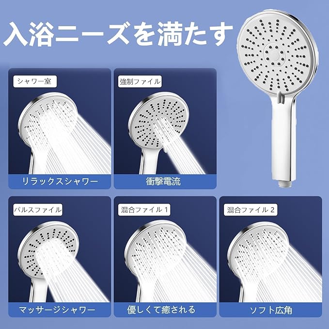 【洗浄抜群】シャワーヘッドの高い水圧により、シャワー時の汚れの吸着・除去力が高まり、洗浄力がアップ!そのため、入浴後の肌はピカピカになります。 同時に、保湿因子が肌の潤いを保ち、浴びた後も乾燥になりません。 【極細水流】シャワーヘッドにはマイクロ・ナノバブルによるウルトラファインバブルを発生させることができる超細孔水板が多数搭載されているため、少量の水でも強力な水流となり、細いのに広範囲に水流が広がり、シルクのような感触! 【異臭除去】シャワーヘッド シャワーヘッドの高水圧で毛穴に詰まった皮脂や汗の臭い要因、加齢臭の要因などの汚れを除去し、不快な臭いを軽減します。 お年寄りやお子様がいるご家庭には特におすすめです! 【節約と環境保護】ナノバブルシャワーヘッドの豊かな泡立ちにより、お風呂で使用するシャンプーの量が通常より少なくなり、使用量も通常より少なくて済むため、化学物質の排出が大幅に削減され、環境にとても優しいです。 【多段階調整】シャワーヘッドには水圧調整機能があり、シャワーヘッドのスイッチで調整できるので快適にご入浴いただけます。