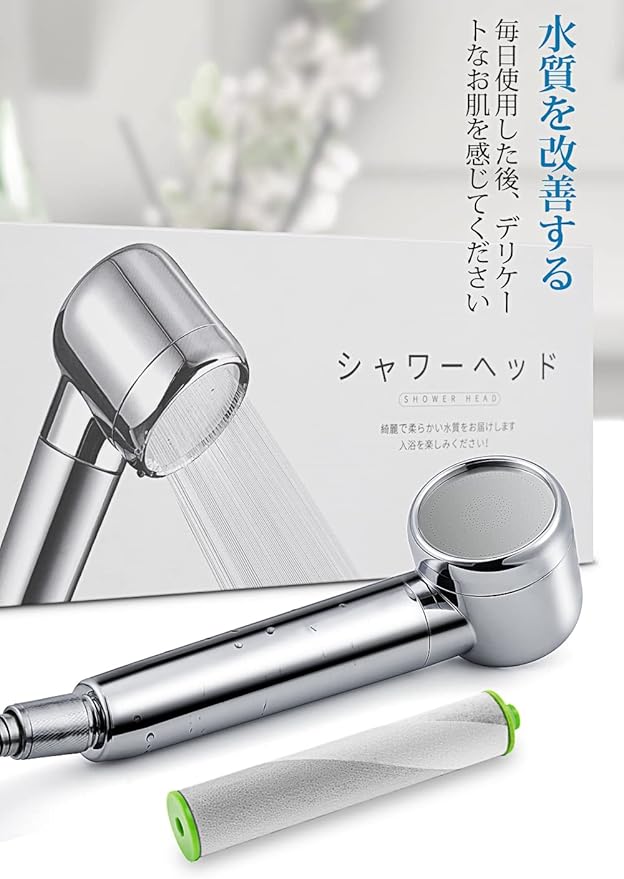 【取り付け方法&内容物】●国際汎用基準G1/2インターフェース通用デザインで、ご家庭のほとんどのシャワーに取り付け可能です。工具不要なのでとっても簡単。●セット内容:シャワーヘッドX1、活性炭フィルタX1(本体に既に内蔵されています)、日本語説明書X1、取り付けアダプター 3種類(KVK・MYM・ガスター)。唯一のサプライヤーを承認する。付属品アダプターで取り付け可能:LIXIL、MYM、 KVK、TOTO、 東京ガスター、SAN-EI