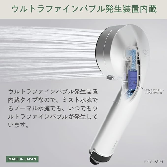 【ウルトラファインバブル】毛穴よりもはるかに小さい泡が毛穴やシワの奥まで入り込み、普段落としきれない汚れも綺麗に洗い流します。保湿効果も期待できるため、スキンケアの土台作りをサポートします。※ノーマル水流・ミスト水流ともにウルトラファンバブルは発生しています。