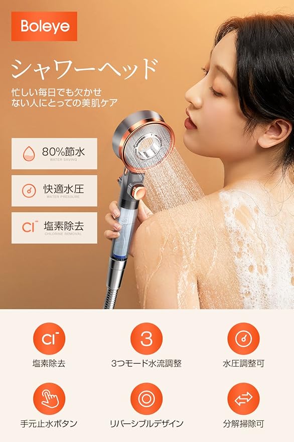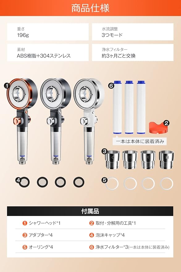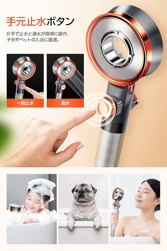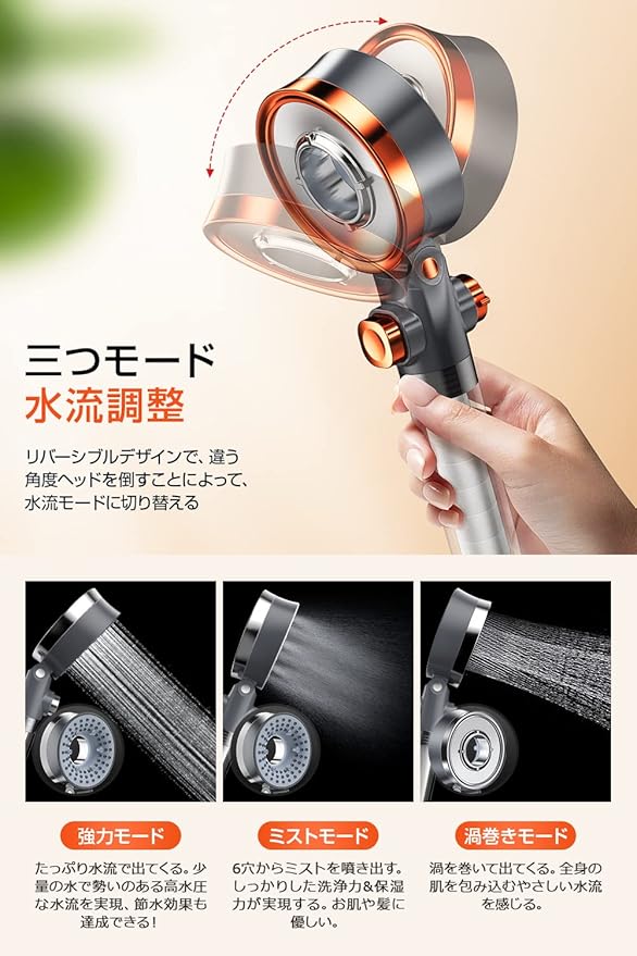 【新登場 塩素除去】 シャワーヘッド 節水 高水圧 塩素除去 マイクロバブル 浄水 しゃわーへっど 3段階モード 強力/渦巻き/ミストモード 手元止水ボタン 無段階水圧調整 増圧モデル 節水シャワーヘッド アダプター付 バスグッズ 極細水流 美肌 美髪 軽量 M/K/G/O ジョイント 取り付け簡単 フィルター3本付き お風呂 父の日 母の日 敬老の日 ギフト (グレー+ローズゴールド)