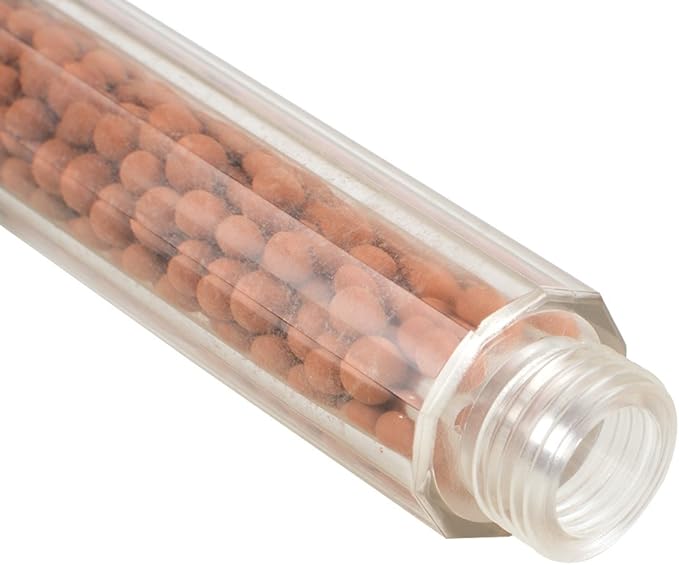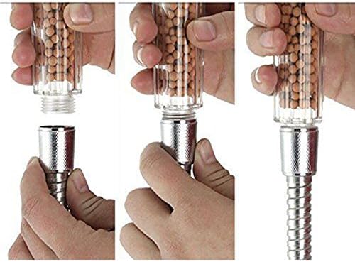 ハンドヘルドシャワーヘッドです。赤と灰色のフィルターボールを備えて、効果的に水を浄化し、水のpHを調整し、肌にやさしいです。