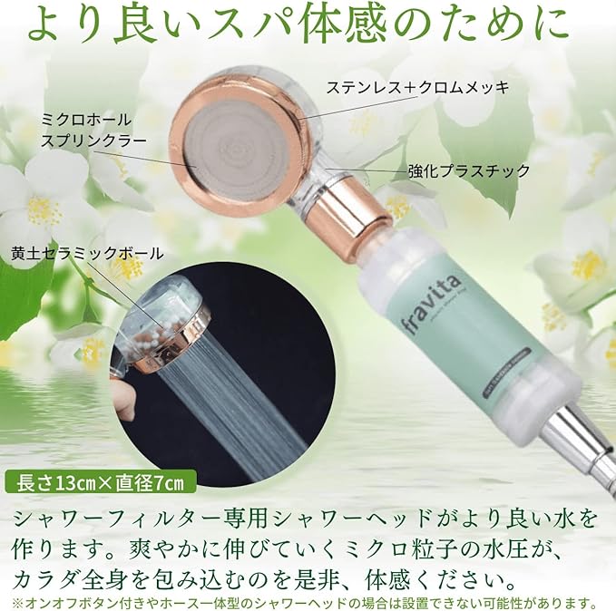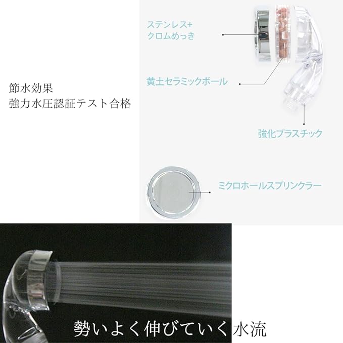 【fravita】 シャワーヘッド(SILVER) 節水シャワーヘッド 除去 美肌 美容 節水 2色のセラミックボール入り