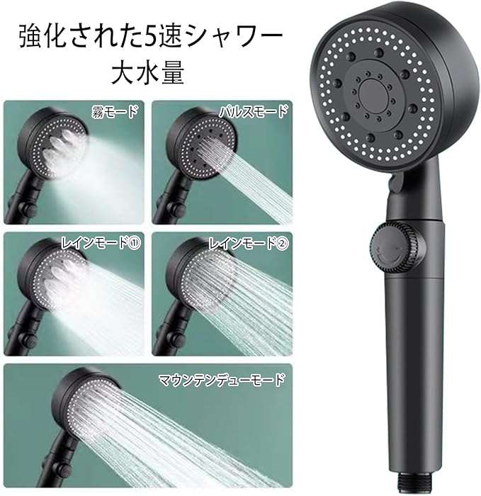 ►5つのシャワーモード:霧モード、パルスモード、レインモード①、レインモード②、マウンテンデューモード。