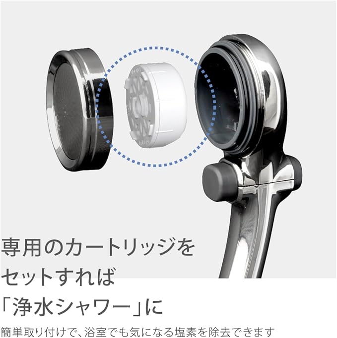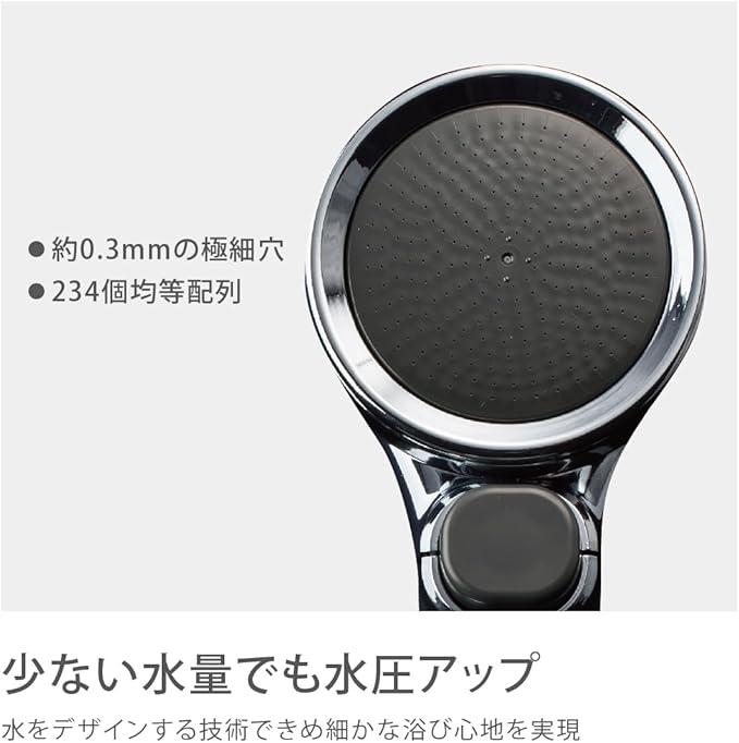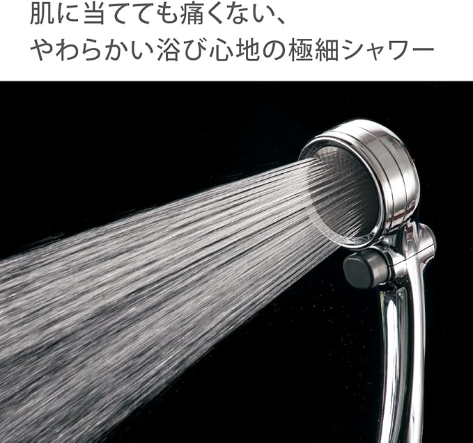 メタリック キモチイイシャワピタ(WT)とホースのセット商品です。工具不要で取付簡単です。水圧が低くてもシャワーに勢いをプラスすることができる節水低水圧タイプで、手元でお湯の止水もON/OFFで切り替えられます。約0.3mmの細い水流と均等配列した高密度なやわらかい肌あたりで、頭全体をしっかりやさしく包みこむ水幅ワイドなシャワーです。