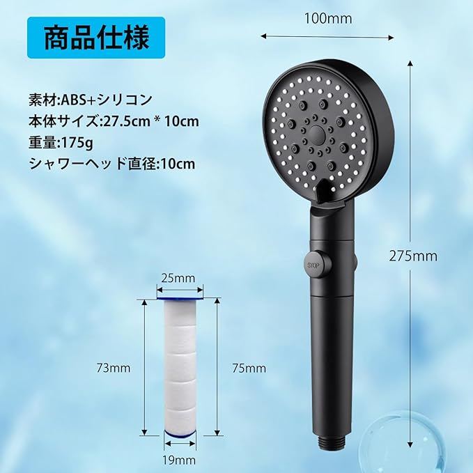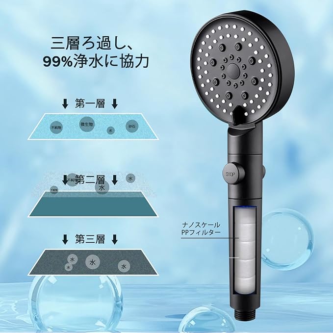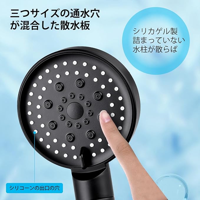 【極細水流】超微細な泡が、肌の角質や毛穴のなかの汚れなどを隅々まで洗浄してくれ、高い洗浄効果を実感することができます。散水板は極細穴を採用して、空気対流の面積を縮んで、細くても高速な水流を実現しています。微細ミストシャワーは通常シャワーと比べると 肌への刺激が約半分!顔などデリケートな部分へ負担をかけず洗い流すことができます