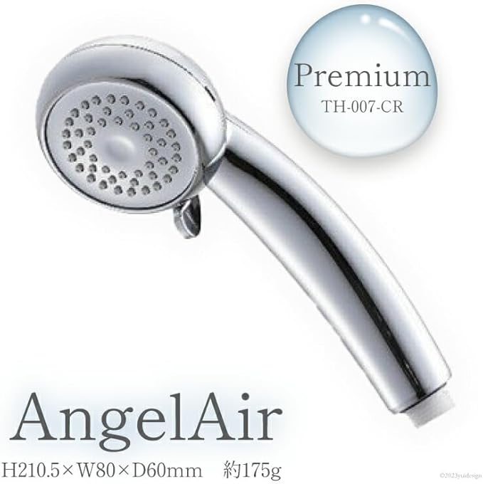 毛穴の奥まで浸透するマイクロバブル。 0.05mmのマイクロバブルで毛穴の奥まで浸透し、ファンデーションや皮脂など、 肌のすみずみまでの汚れを吸着して取り除きます。 保温効果1℃上昇 高濃度マイクロバブルが皮下血流量を増加させるため、暖かさが体の芯まで 浸みわたっていくような効果が得られます。 通常のシャワーに比べて皮下体温を1℃上昇させます。 マイクロバブル15倍(従来品と比べて) エンジェルエアは従来品に比べて15倍の量のマイクロバブルを発生させます。 また発生した泡の粒子が小さいため、より高いマイクロバブルの効果が得られます。 節水効果40% 空気を40%内包、たっぷり感のあるシャワーに。節水疲れを感じさせません。 簡単お手入れ カルキ汚れもヘッドの突起を軽くこするだけで簡単に落とすことができます。 機能項目 本体サイズ(高さ 幅 奥行) 215 80 60 本体重量 175g 付属品 接続用アダプター 仕様1 マイクロバブル