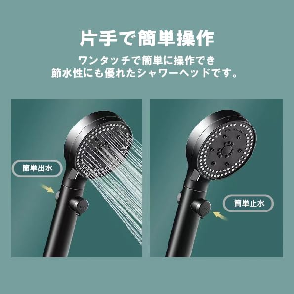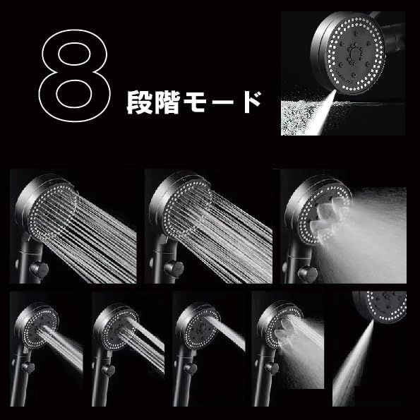 【LDKベストバイ3冠受賞】 シャワーヘッド 日本製塩素除去剤 節水 浄水 止水ボタン 水流調整 角度調整 アダプター付 国際基準G1/2 (ブラック)