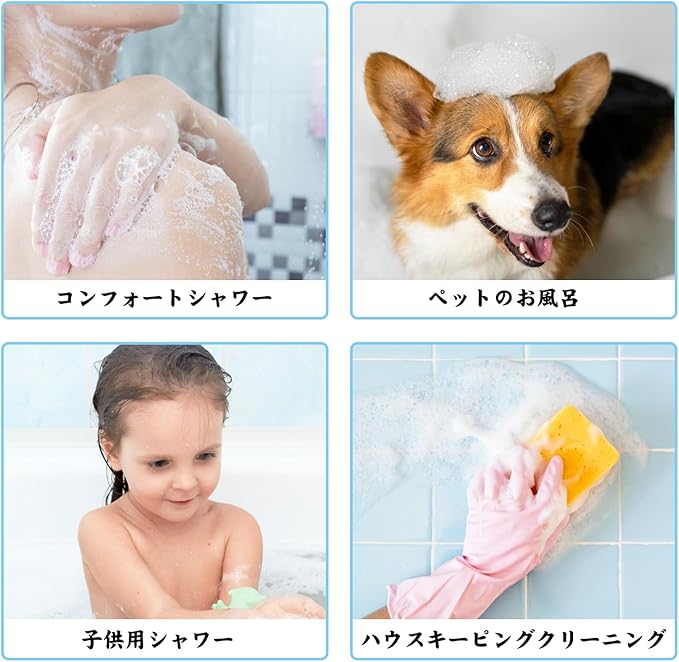 取付簡単 水漏れ防止:国際汎用基準G1/2インターフェースで、ほどんどのホース種類に対応可能です。4種類のアダプタ(M/K/G/O)が付き、自宅のシャワーヘッド規格によって簡単に取付けられます。