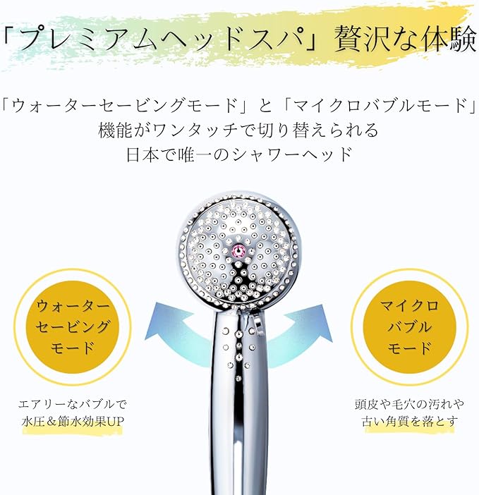 『マイクロバブル』と『ウォーターセービング』機能がワンタッチで切り替えられる日本で唯一のシャワーヘッドです。