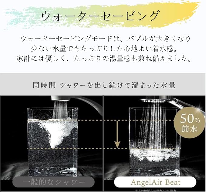 ・ウォーターセービングモードに切り替えるとバブルが大きくなり、少ない水量でもたっぷりした心地よい着水感をを感じられます。