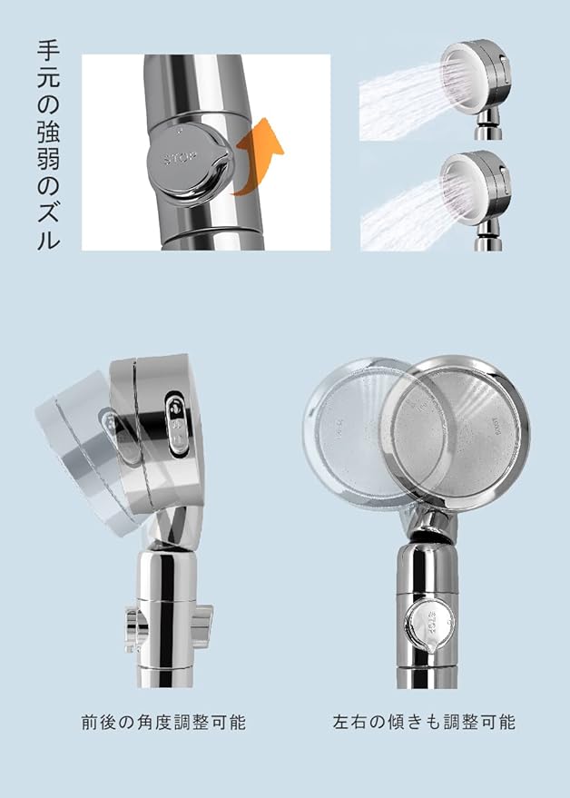 ✅ヘッドは高級感のある鏡面仕上げで、前後左右へ自在に動かすことができ、あなたのベストポジションを獲得することができます。 ◇ワンストップで止水できるボタンも採用。またシャワータイプも3段階で変化可能。