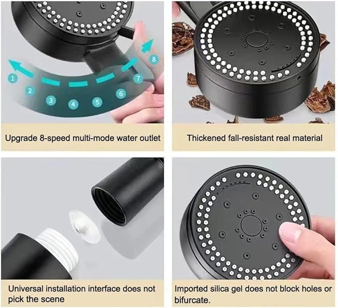 8つの入浴モードを備えたバスルームシャワーヘッド、目に見えるターボチャージファンを備えた高圧シャワーヘッド、家庭用ハンドヘルド給湯器フィルターシャワー