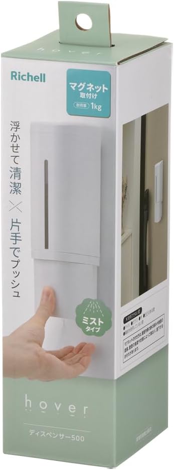 リッチェル(Richell) ホバー マグネットミストディスペンサー 500 ホワイト 1個 110052 ディスペンサー 押しやすい 片手 詰め替え プッシュ ミスト 貼れる 下から出る 浮かせる 収納 おしゃれ プラスチック サイズ/6.6 8 22H(cm) 容量/500mL 材質/ポリプロピレン他 耐荷重/1kg