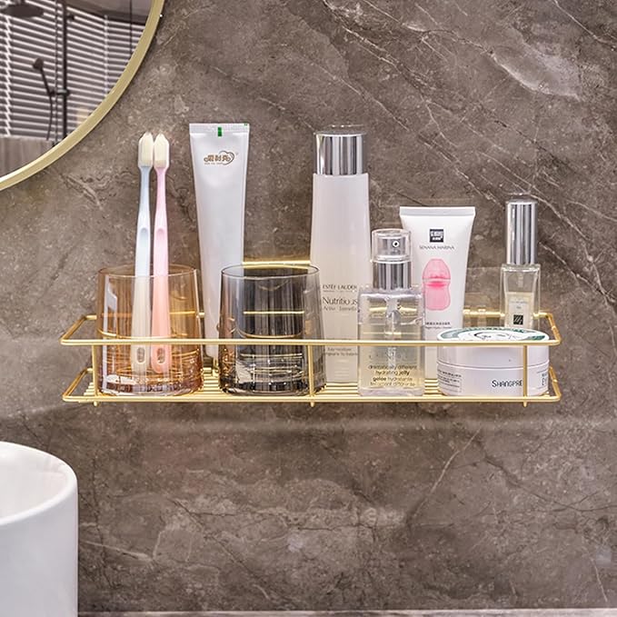 [Queen-b] 洗面所 収納 ラック 大小2個セット ゴールド フレーム 強力 粘着 穴あけ不要 壁掛け 浴室 バスルーム 化粧品 歯磨き コップ 収納棚 バスケット 小物 整頓