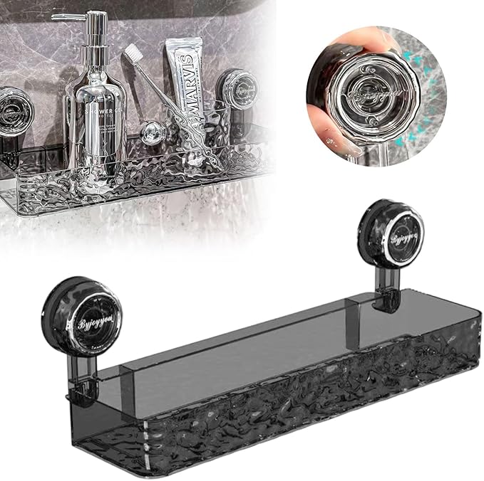HARUMAKI 波型吸盤式収納ホルダー 吸引カップストレージオーガナイザー 吸盤式シャワーシェルフ バスルーム棚 2025年新モデル 穴あけ不要 クリアウォールウェーブ棚 多機能 長方形収納 軽高級スタイル 氷河柄吸盤ラック (ブラック)
