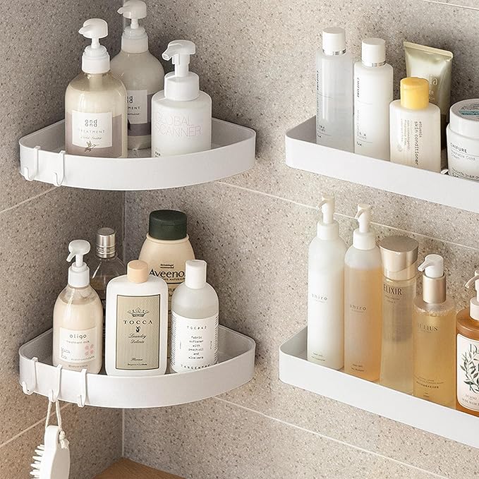 ◆ パッケージにはコーナーシェルフと粘着フックのみが含まれており、その他のアイテムは写真撮影用小道具としてのみ使用され、含まれていません。