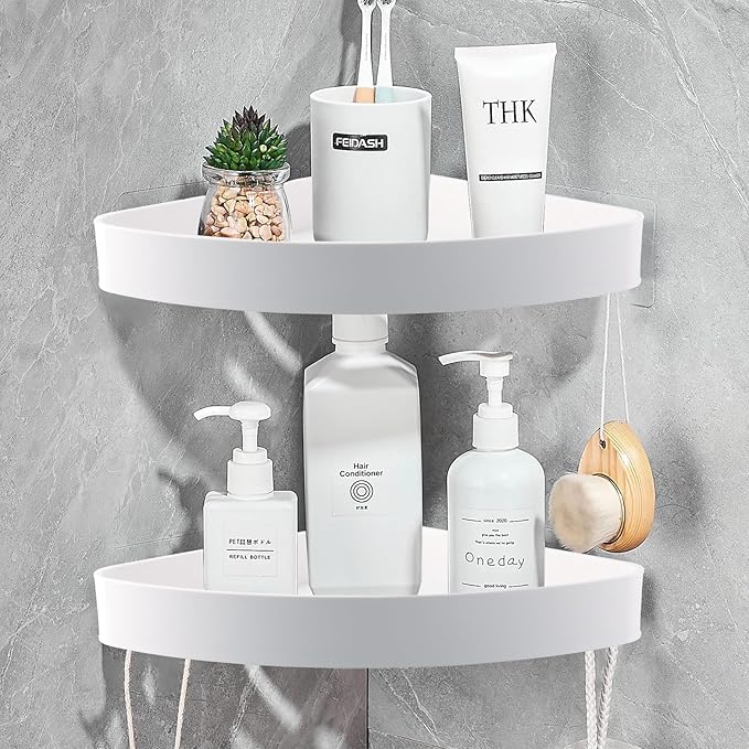 コーナー 棚 壁掛け シャワーラック 粘着式 壁に穴を開けない 棚 コーナー 2 個セット シェルフ 角 ホワイト フック付き フローティング シェルフ 取り付け簡単 飾り棚 壁掛けラック 浴室収納 バスルーム キッチン 寝室 リビングルーム用