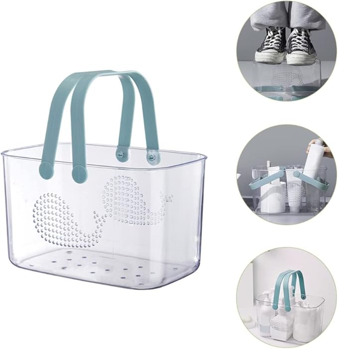 クジラ型プラスチックバスケット 取っ手付きシャワーキャディ バスルーム収納オーガナイザー 便利なポータブルバスケット 小スペース対応 お風呂用収納ボックス