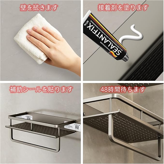 MABOBA 浴室用ラック シャンプーラック シャワーラック アルミニウムとマグネシウムの合金です グレーです 浴室用の強力な粘着付きの壁掛け一段棚 耐錆び耐空気耐酸化トイレキッチン多用途使用します40 12 4cm
