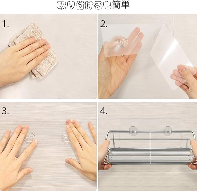 【粘着力強くて】粘着力が強くて、壁に穴を開けない、取り付けも簡単し、タイル、ガラス、大理石などの滑らかな壁面にしっかり貼ることができます。水で洗って何回も缲り返して使えます。