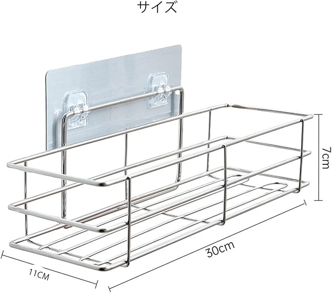 強力粘着 収納ラック シャンプーバスケット シャワーラック 浴室用ラック 壁に穴を開けない 洗面所収納 洗面台 キッチン 収納壁掛け棚 お風呂収納 304ステンレス 30 11高さ7cm