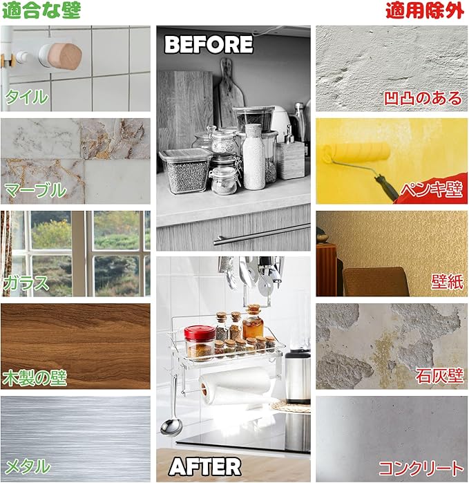 【強力粘着タイプ】粘着タイプでどこでも設置可能。穴を開けずに簡単設置!壁に傷を付ける心配がなく賃貸住宅でも安心!粘着力が非常に強く、一度設置すれば長期間安定した使用が可能。設置作業はたったの数分!工具不要でどなたでも簡単に取り付けられます。強力な粘着テープが2枚付属しております。女性でも簡単に交換できるので究極的な便利さを求めます。