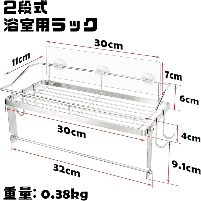 【サビに強いステンレス素材】このラック全体にはステンレス素材を使用、サビに非常に強く、長期間使用しても美しさを保てます。お風呂場、洗面所、キッチンなどは湿気が多く、サビが発生しやすい場所に最適。お手入れも簡単で、軽く拭くだけで清潔感をキープできます。手間いらずで便利、そして長持ちします。頑丈なステンレスで最大約5kgまで支えられる設計、家族全員分のバス用品を収納可能。