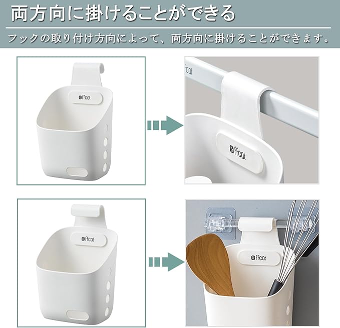 【両方向に掛けることができる】フックの取り付け方向によって、両方向に掛けることができるので、さまざまなニーズに対応可能です。