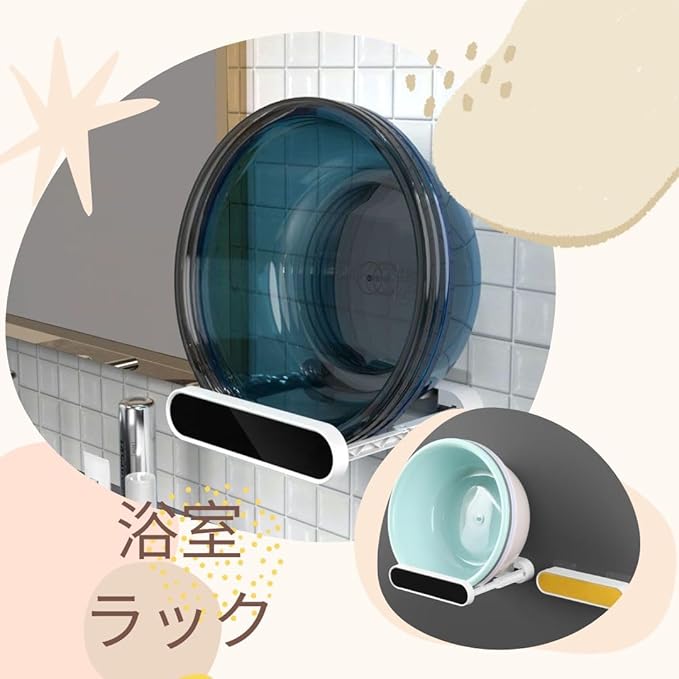 ・安定感を重視した設計により、大きめの洗面器でもしっかりホールド。使いやすい高さに設置できるため、子どもから大人まで手軽に取り出せます。浴室空間を有効活用し、清潔感のある状態を保つためのおすすめ収納ラックです。