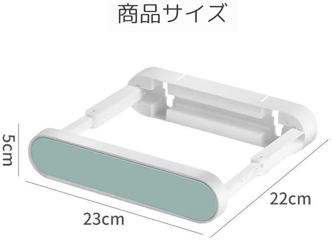 本体サイズ(幅23cm 奥行22cm 高さ5cm)、重量(本体重量130g)、材質(本体:プラスチック)、推奨耐荷重(3kgまで)、取り付け方法(粘着式)、生産国(中国製)※桶は別売りです。