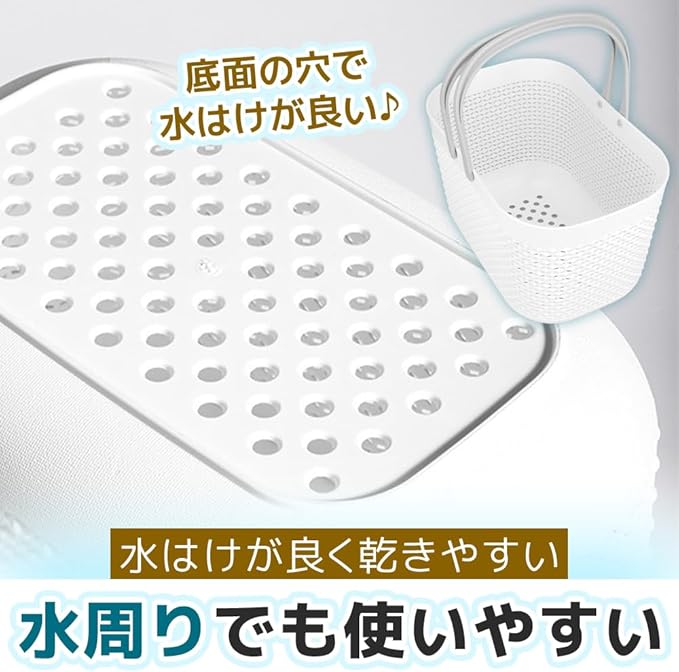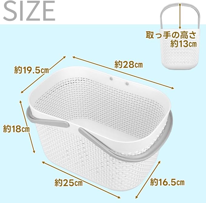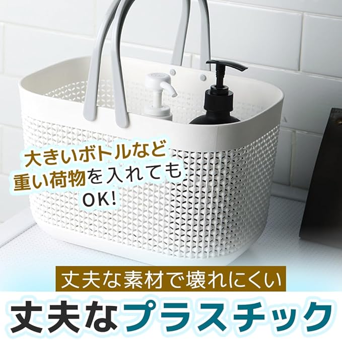 浴室用バスケット 入浴グッズ入れ 持ち手付き シャンプーボトル タオル 大容量 (ホワイト)