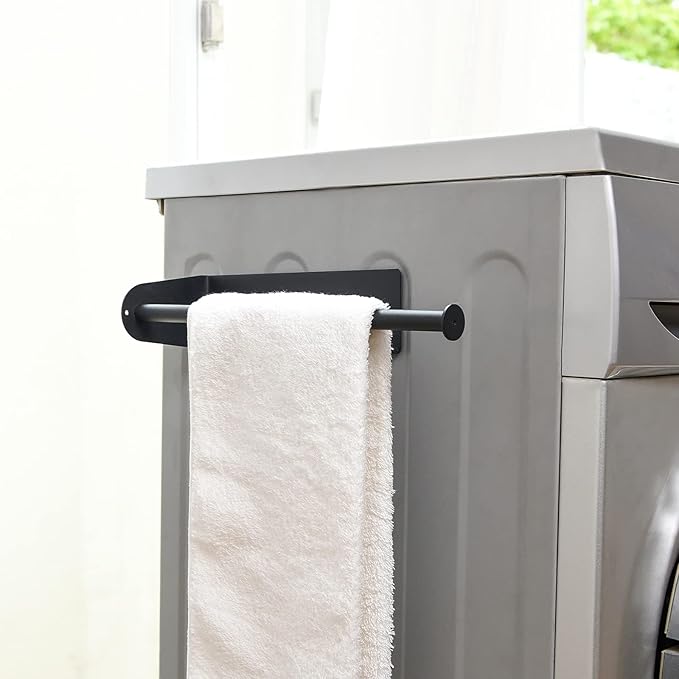 バスルーム ラック 浴室用ラック 強力固定 お風呂の壁に ステンレス シャワーラック 水切り 風呂場洗面所収納壁掛け棚 収納ラック (30cmタオル掛け マグネット, ブラック)