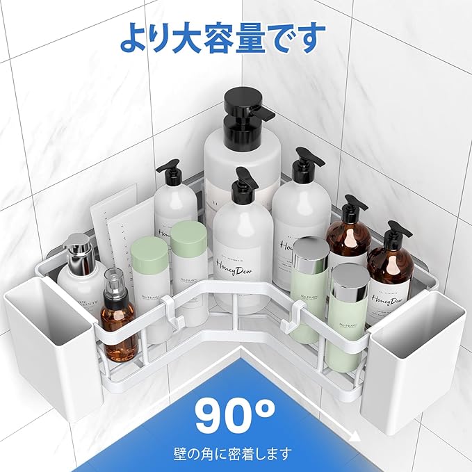 PKBDシャワーラック【2024アップグレード大容量】シャンプーラック強力粘着固定浴室洗面器収納3段式(白です)