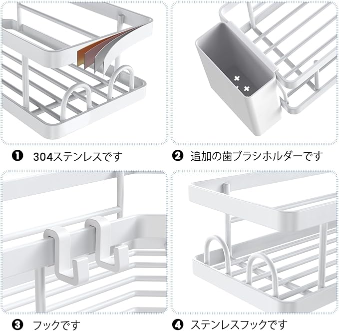 【製品に含まれます】ラック x 2,せっけん棚x 1,です粘着テープ x 10,歯ブラシ立てですx 2,フックですx 4,マニュアル x 1,温かいカスタマーサービス。