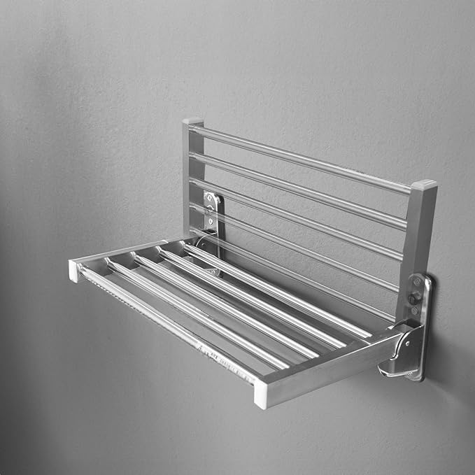 ●【材質】ステンレスSUS304。●【本体サイズ(mm)】使用時:W380 H120 D211.5。収納時:W380 H239 D48.5。●【耐荷重】10kg。●【付属品】取付ビス 6本/コンクリートプラグ 6本。●【個装サイズ(mm)】W410 H60 D250。●【個装重量】1030g。●日本製。