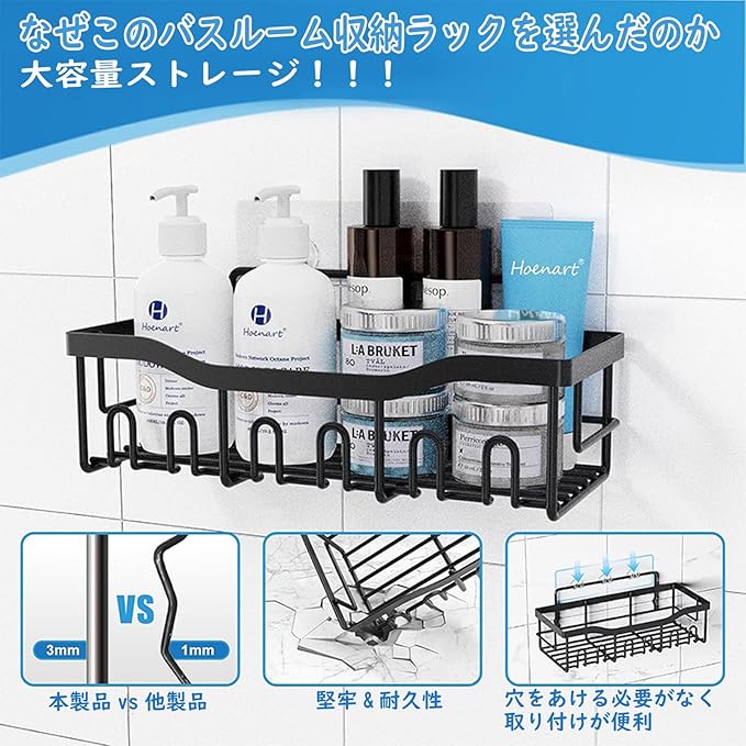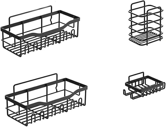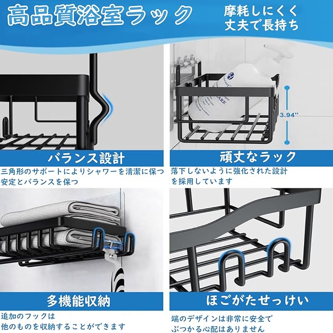 【4点セットの浴室収納ラック】浴室収納ラックの4点セットは2つのシャワーのラックを含んで、1つの歯ブラシのラックと1つ石けん皿、十分な貯蔵の空間があって、とても良い収納のバス用品と調理の調味用品、最大の程度で利用することができる空間を増やして、生活のいっそうの精緻にさせます。寮/バスルーム/キッチン/トイレ/工具室にぴったりです。