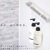 【仕様】全体サイズ:幅216mm 奥行50mm 高さ165mm◆穴直径:約3.2cm(一般のシャンプーボトルサイズに合わせて設計しております。お手持ちのシャンプーボトルに適合するかお確かめください。)◆耐荷重目安:約5kg◆素材:ステンレス(本体)◆仕上げ:極細凹凸粉体塗装◆生産国:日本(奈良県)