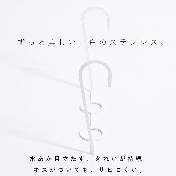【機能性】①フックで浮かせて浴室に吊り下げ収納できるので衛生的です。②素地はステンレスなのでサビにくく、カビにくい為、ずっと美しいままご使用頂けます。③ステンレスを線上に削り出しているので、水切れが良く、衛生的です。また、線は細いですが、材料に十分な厚みがあるので、強度が高く、強く押しても大丈夫です。