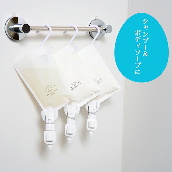 詰め替えクリッピュ 1個セット ホワイト シャンプー リンス ボディソープ 化粧水 クレンジングオイル 詰替え 対応 ぶら下げ 吊り下げ 浮かせる ディスペンサー お風呂 便利グッズ