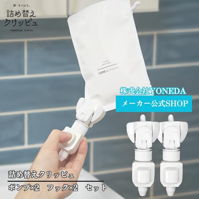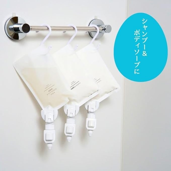 詰め替えクリッピュ 2個セット ホワイト シャンプー リンス ボディソープ 化粧水 クレンジングオイル 詰替え 対応 ぶら下げ 吊り下げ 浮かせる ディスペンサー お風呂 便利グッズ (ホワイト)
