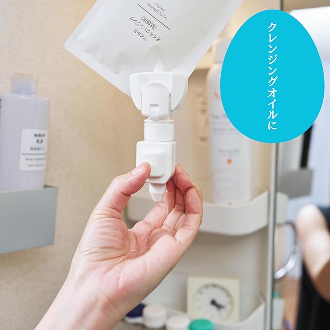 ①【簡単便利】 面倒な詰め替え作業不要。 詰め替えパックを簡単セットするだけでそのまま使える。 シャンプーリンスなどの詰め替えパックに取り付けることで使用することができる。