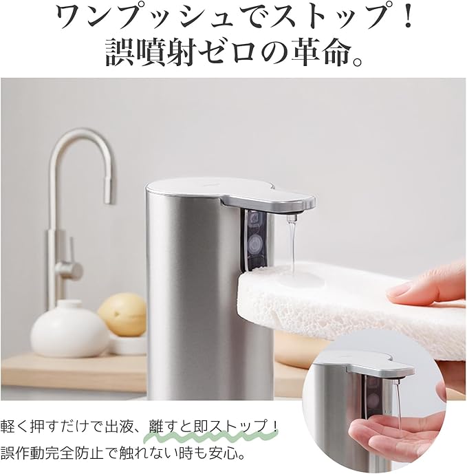 ️ 【精密な液量制御|押す量=出る量の革新技術】本ソープディスペンサーは軽く押せば出液、離せば即停止。 0.05ml精度でディスペンサー 液体の無駄をゼロに。誤動作センサー搭載で無人時も絶対安静、他品の誤噴射問題を完全解決。