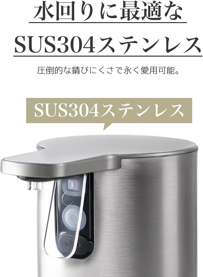 Umimile ソープディスペンサー 液体 ステンレス 充電式 IPX7防水 食器用洗剤/ボディソープ/シャンプー SUS304製 自動洗浄&定量モード 壁掛対応 350ml大容量 詰まり防止設計 充電2時間で半年持続