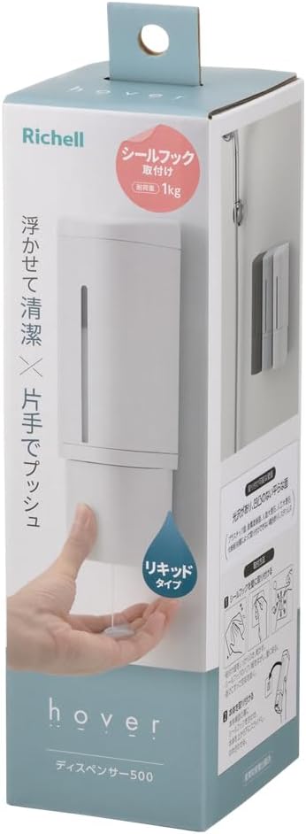 リッチェル(Richell) はがせるタイプ ホバー シールフックディスペンサー 500 ホワイト 1個 110033 ディスペンサー 詰め替え 押しやすい 下から出る お風呂 浮かせる 収納 片手 粘着 プラスチック サイズ/6.6 8 22H(cm) 容量/500mL 材質/ポリプロピレン他 耐荷重/1kg